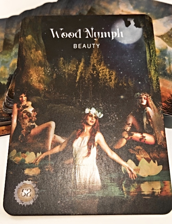 Wood Nymph ” Beauty” This card brings a message of celebration, connection, finding ones true tribe, rejuvenation and seeing the beauty within ourselves and each situation. This card comes as a reminder there is light at the end of the tunnel in regards to the global situations at this time. It’s also reminding us to bring in more of the playful energy into our day to day living, dance, sing, be playful and getting out in nature as it will help to ground and up lift our energies. Honour your intuition and spend time studying and learning, and doing the things that will bring you the most joy and fulfilment. You are truly connected to the spirit realm and you are being asked now to start sharing your wisdom. This is also a reminder to look at your self with loving eyes, to remember you are a beautiful soul with so much magic to offer the world.