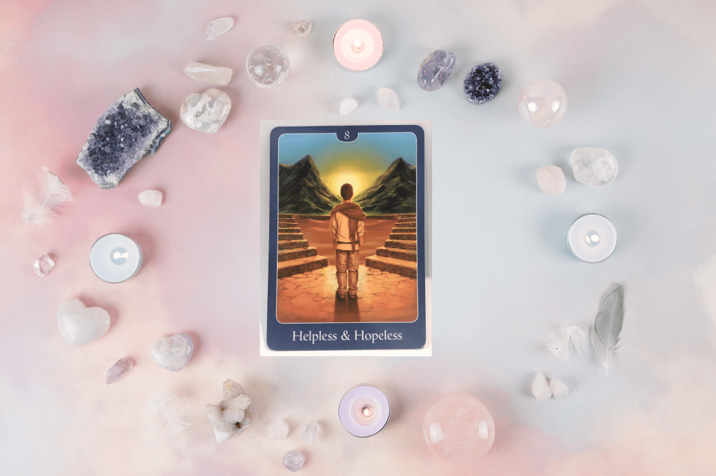 Card 2 – Helpless and Hopeless, #8 – I am being guided to read this card in two ways, and it is the main energy at this time – obstacles/challenges and choices/decisions – No one choice is better then the other, both will come with lessons and perceived set backs. 8 is also about manifestation, so what your putting your attention to will come into fruition so to be very mindful of what and where your thoughts and energy is going.