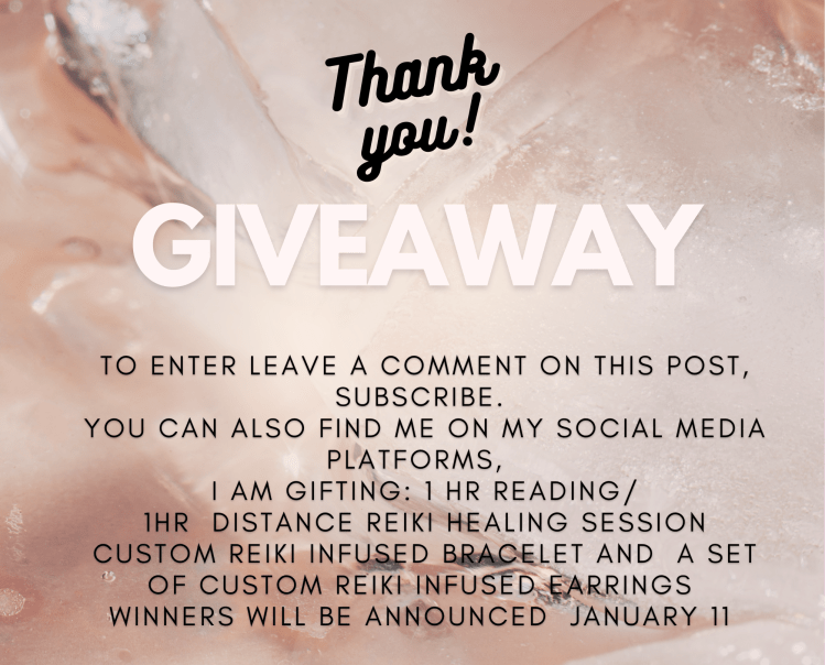 Don’t forget to enter the GIVEAWAY for your chance to win a reading or healing session and some custom reiki infused jewelry. Just click on the link below to enter, or simply leave a comment below to enter.