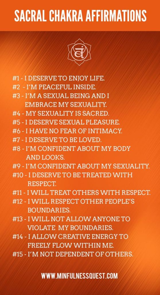 Below I was guided to add some sacral chakra affirmations I found on Pinterest (I have tried to link to it but the address is not correct). So credit to the creator of this wonderful set of affirmations.
