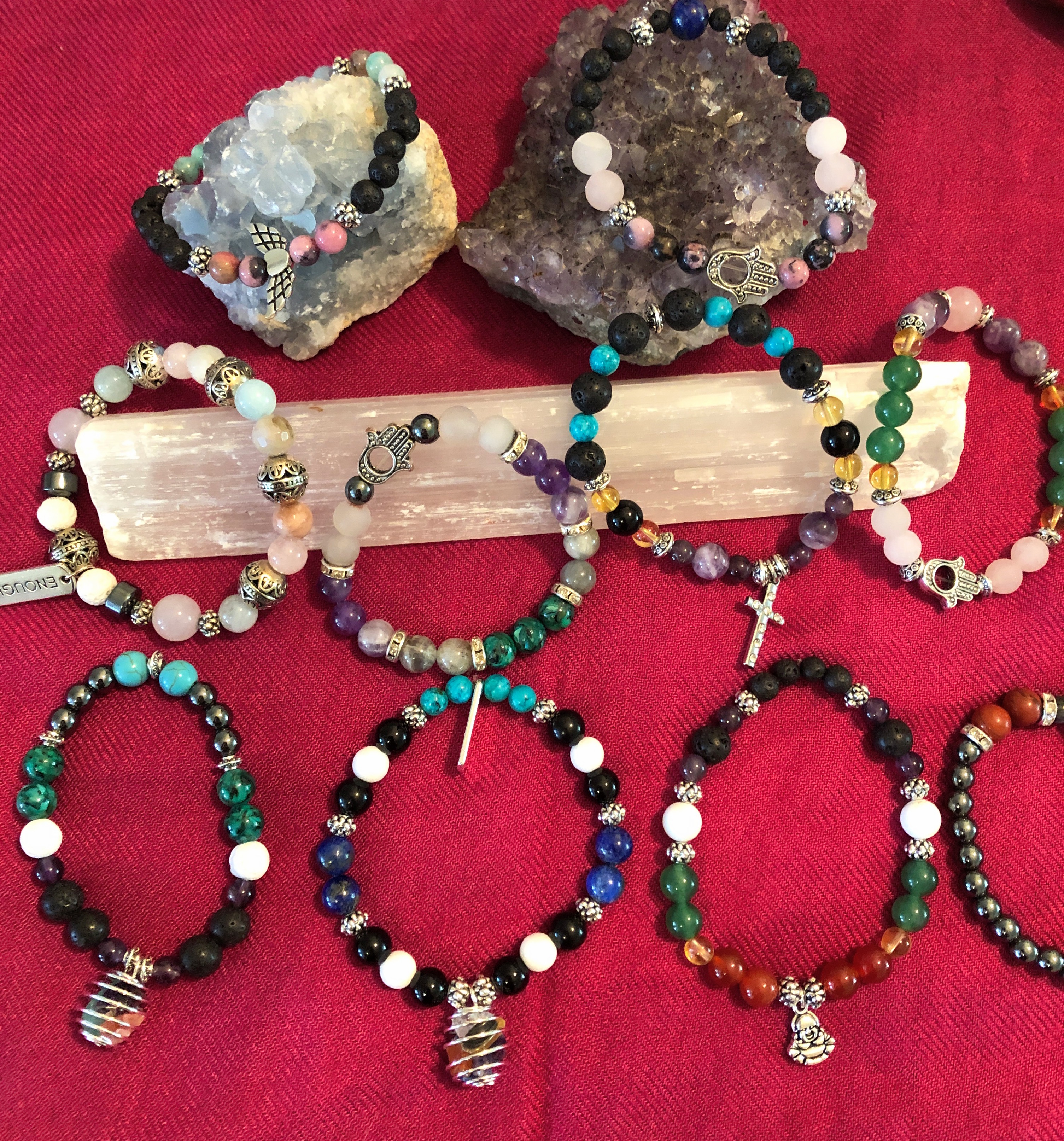 All of my bracelets are made by me with quality crystals that I source from local businesses. I take time to research each crystal in-depth to find the best possible match for the specific needs of my clients. When not creating bracelets for a particular person, I then clean each bracelet and infuse it with healing Reiki energy.