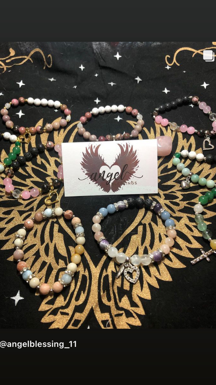 For these bracelets, I did not have a specific client, so I created them with a certain healing theme: self-love, healing relationships with self and others, angelic guidance, heart chakra healing.